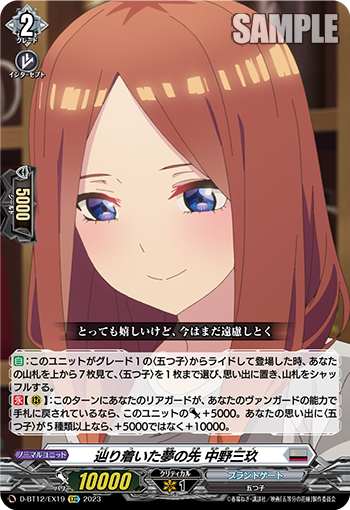 D/BT12/EX19EXC 辿り着いた夢の先 中野三玖